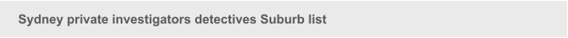 Sydney private investigator by suburb, phone 1300 966 103, TEXT ONLY to 0427 703 120, Free quotes: Discretion assured. Alternately email us at info@privateinvestigatoraustralia.com.au. There are private investigator information tabs to the left of the page. Please use our suburb list to confirm we cover your area.