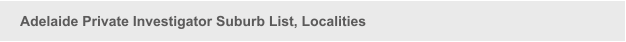 Adelaide private investigator suburb list; these are the suburbs where