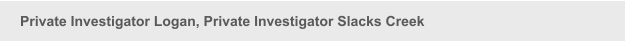 We are a Logan private investigator, Logan private detective, Logan private investigation, service; we are a Slacks Creek private investigator, Slacks Creek private detective, Slacks Creek private investigation service. We are Queensland licensed investigators, networked to provide a service to you. We are only required to report to the client, so discretion is assured, for delicate matters.