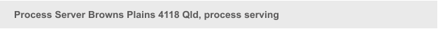 The Browns Plains process server,Browns Plains process serving, area of service includes Browns Plains 4118 Qld, Regents Park 4118 Qld, Heritage Park 4118, Parkinson 4115, Drewvale 4116, Forestdale 4118, Baronia Heights 4124, Crestmead 4132, Marsden 4132, and Logan process serving. When you need a court document served, a divorce application, a court process served, contact us.
